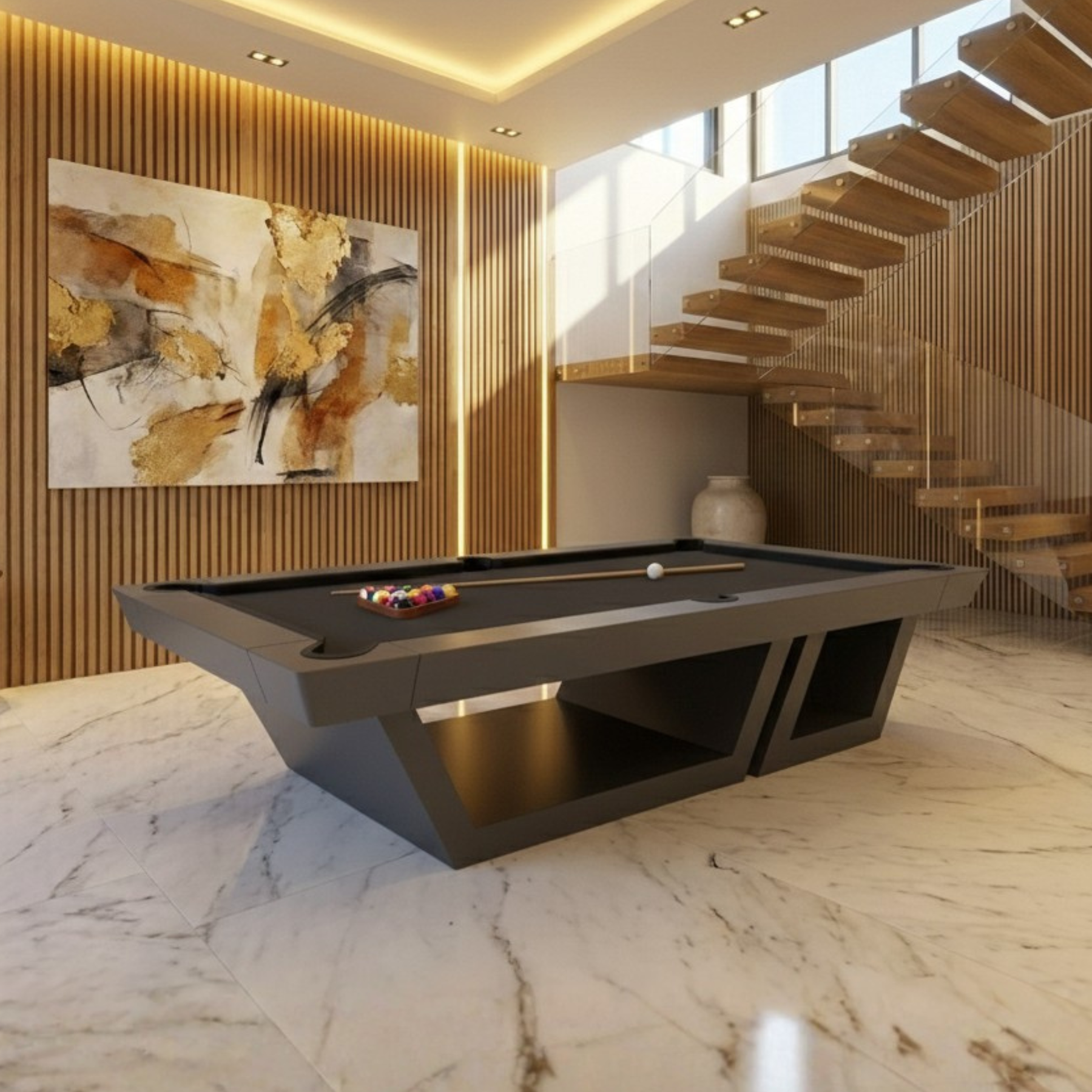 Experience the thrill of a lifetime with the Angostura Pool Table. With its unique inclined lower structure, this masterpiece takes your game to new heights of excitement. The sleek design not only adds a touch of elegance to any space but also enhances gameplay by providing a dynamic playing surface. Whether you're a casual player or a seasoned pro, the Angostura Pool Table guarantees endless hours of fun and friendly competition. Get ready to elevate your pool-playing experience like never before.